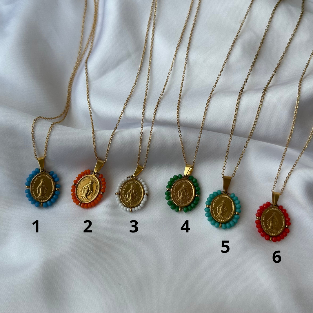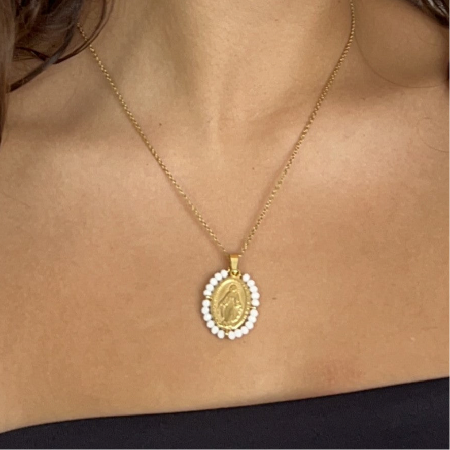 Our Lady of Grace necklace in stainless steel ( it can last a lifetime if you take certain care).